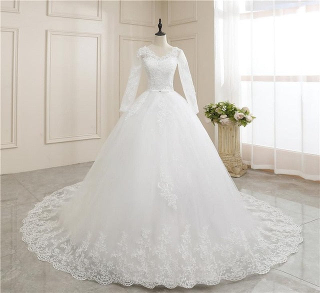 2019 Lace Embroidery Half Sleeve Wedding Dresses Long Train Wedding Gown V Neck Elegant Plus Size Vestido De Noiva