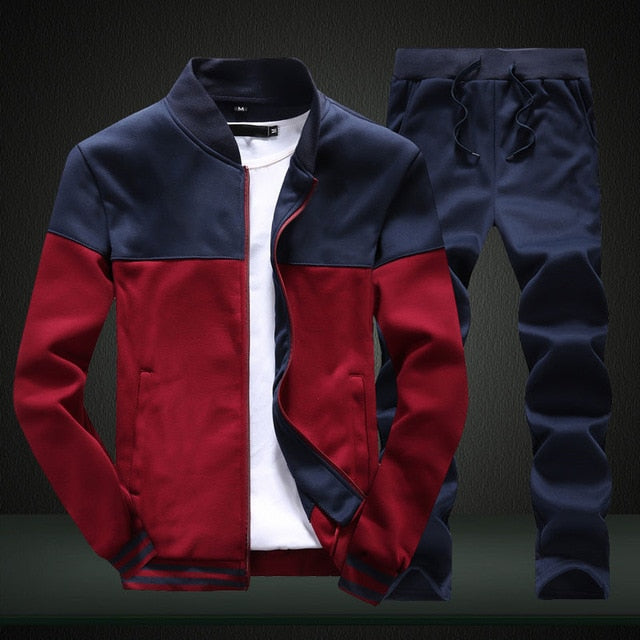 2020 New Men Sets Fashion Sporting Suit Brand Patchwork Zipper Sweatshirt +Sweatpants Mens Clothing 2 Pieces Sets Slim Tracksuit