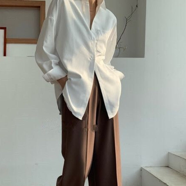 Lizkova White Blouse Women Suede Long Sleeve Formal Shirt 2020 Spring Lapel Ladies Blouse Streetwear 8866