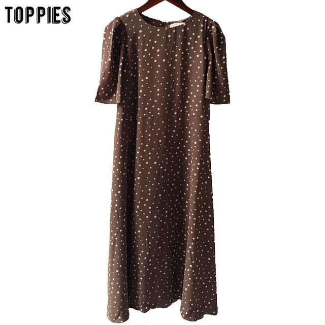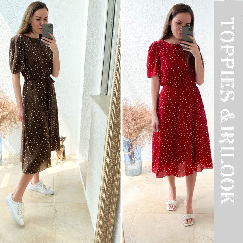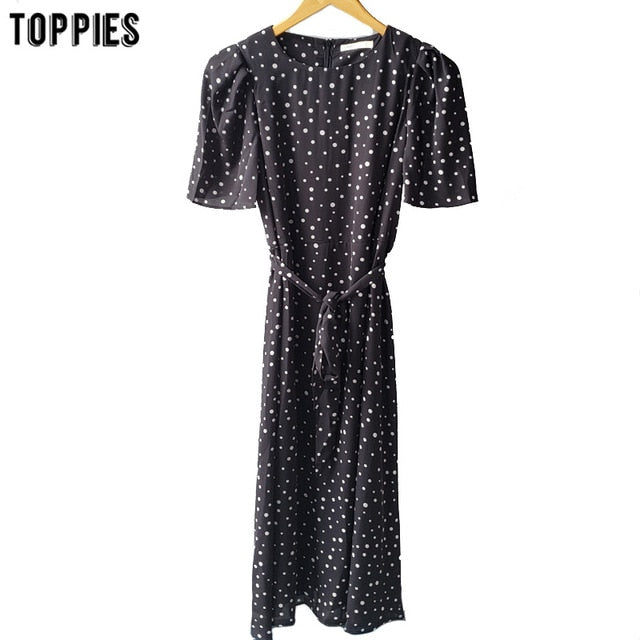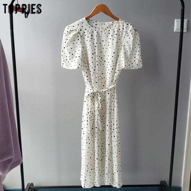 toppies summer white polka dot chiffon dress womens midi dress short sleeve slim waist vestidos mujer 2020